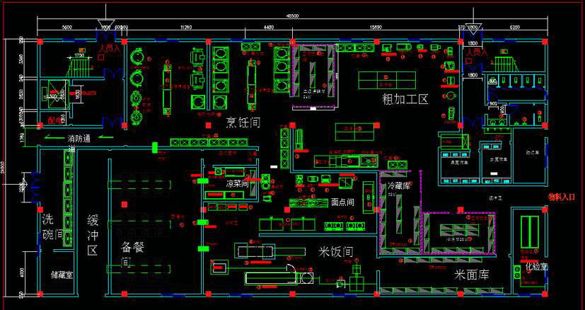 對廚房進行綜合分析,設計時確保廚房設備選配整體功能不缺項.整體功能匹配科學合理。對于中小廚房保證整體動能完備比較難的。主要設備和配套設備要配置合理,不受顧此失彼,影響整體功能。可采取工藝模擬的方法,從原料擇洗開始,到改刀、熟制、裝盤、傳菜上桌的工藝過程要模擬演練一遍.是否有加工能力不足或多余的情況,適當增減設備,或變通設備配置。