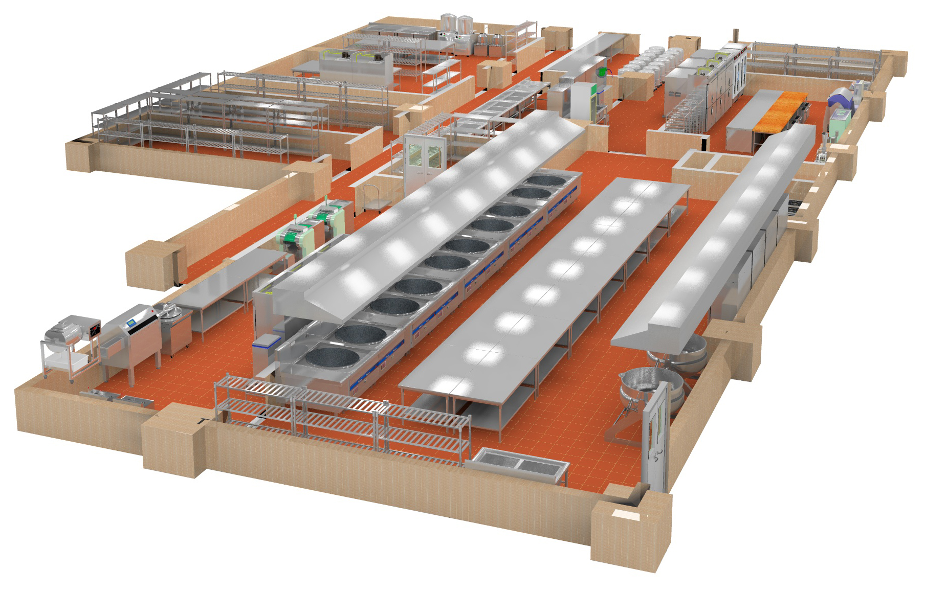 1、了解客戶廚房的既定菜式,以此為中心,嚴格按生熟食品分隔的原則進行飯店廚房設計,保證食品衛生。