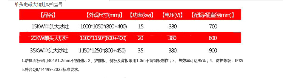 2、采用微晶板,能夠很好的防水、防火、防漏電、防干燒等防護,可以抗擊沖擊,比一般單頭電磁大鍋灶更加的耐磨、耐腐蝕、耐高溫。超靜音工作環境,45分貝以下。