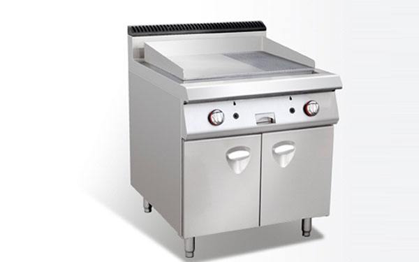 平面煎板又稱平面扒板。其表面是一塊1.5-2厘米厚的平整的鐵板,四周是濾油槽,鐵板下面有一個(gè)能抽拉的鐵盒。熱能來(lái)源主要有電和燃?xì)鈨煞N,靠鐵板傳熱使被加熱物體均勻受熱。使用前應(yīng)提前預(yù)熱。