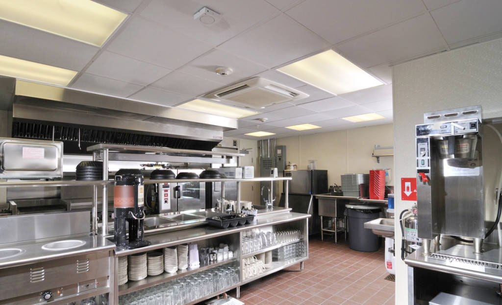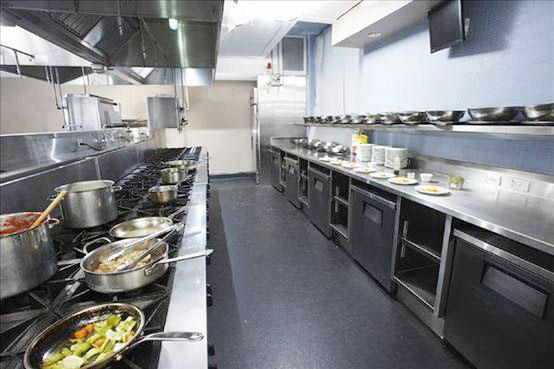餐廳的燈光重文化,廚房的燈光重實用。這里的實用,主要指臨爐炒菜要有足夠的燈光以把握菜肴色澤;案板切配要有明亮的燈光,以有效防止刀傷和追求精細的刀工;出菜打荷的上方要有充足的燈光,切實減少雜草混入并流入餐廳等等。廚房燈光不一定要像餐廳一樣豪華典雅、布局整齊,但其作用絕不可忽視。
