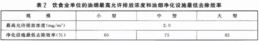 在我國對油煙排放有著嚴(yán)格的限制,國標(biāo)《飲食業(yè)油煙排放標(biāo)準(zhǔn)(GB18483-2001)》規(guī)定,油煙排放濃度不得超過2.0mg/m3,相應(yīng)凈化系統(tǒng)的凈化效率大型系統(tǒng)不得低于85%,中型系統(tǒng)不得低于75%,小型系統(tǒng)不得低于60%。