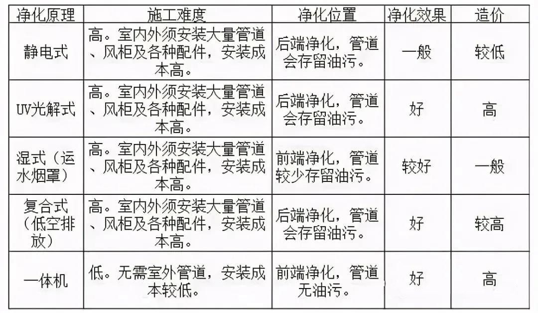 為大家總結了各種凈化方式的對比分析,您可根據實際情況選擇。