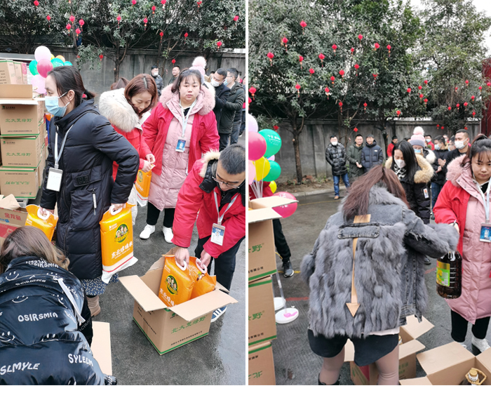 整個會場馬上又活躍起來,員工們開始排隊有序的領取公司的禮品,每個人兩只手都提滿了禮品,內心充滿喜獲豐收的喜悅。
