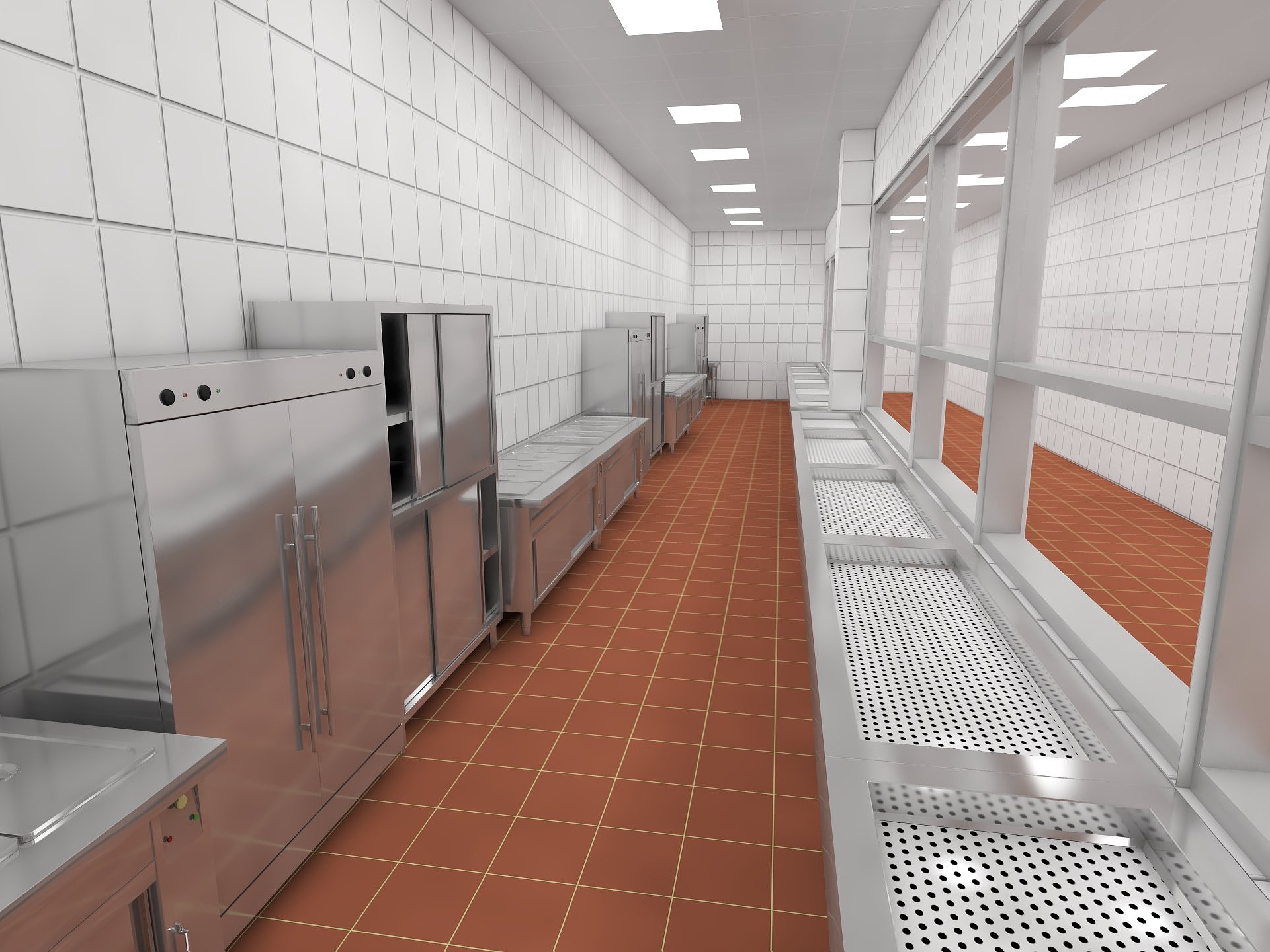 食堂廚房最重要的安全與衛生方面,也需要地面與墻壁的配合保證。地面需要使用防滑瓷磚、防腐 、容易清潔;墻面用平滑的白色瓷磚或其它顏色淡雅的瓷磚,與室內光線協調,并且易于清潔。食堂的廚房一般都有快餐座位,配套設施有:超市、水果店、飲品店等,這些配套設施都集中在飯廳旁邊,方便人們消費。