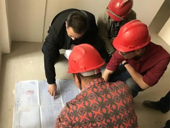 2.現(xiàn)場測量校對圖紙,記錄溝渠、梁、柱、突出物、高度等變化部位的具體尺寸。