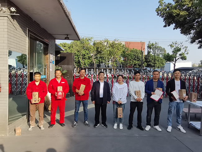 在各部門的負責(zé)人回顧完本部門的工作后,便開始了頒獎環(huán)節(jié)。獲獎人員紛紛上臺領(lǐng)獎,并和公司領(lǐng)導(dǎo)合影。