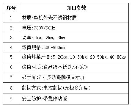 半自動(dòng)GB系列(無菜譜錄制、自動(dòng)烹飪功能)炒菜機(jī)參數(shù)
