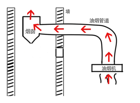 3、有的餐飲為了裝修廚房好看,將油煙機的排氣孔裝在吊頂上,通常情況下,開發商預留的煙道孔位置是朝下的,為了安在吊頂上面,封死了開發商原來設計好的煙道孔,在上端重新開個口,將煙道口上移,這樣會引發副煙道失去隔檔的效果,再加上排氣管放入公共煙道,容易發生油煙倒灌。
