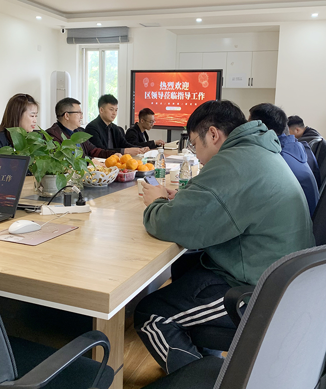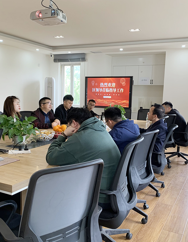 在會談中,袁總向各位來訪的領導介紹了公司的主要業務以及經營情況。區領導在聽取了袁總的介紹后,對公司的工作給與了肯定,并且對相關工作進行了指導。