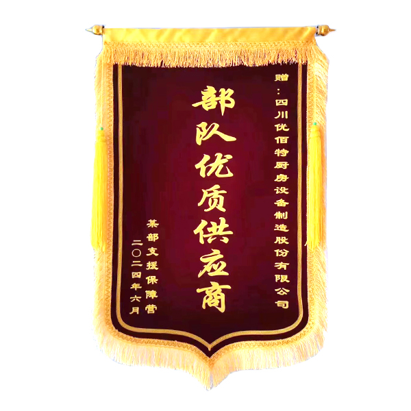 熱烈祝賀優佰特獲贈“部隊優質供應商”錦旗一面。我們公司在6月份的項目中,有一個成都某部隊的食堂廚房。由于是給部隊建設廚房,而且部隊的作風都是雷厲風行,所有的設備都必須在規定的時間內生產安裝完成。為了能夠滿足部隊的需要,我公司在接到訂單后就馬不停蹄的生產,快速組織生產人員加班加點的趕進度,把整個廚房設備都快速的保質保量的生產安裝完畢。我們的出色表現,解決了部隊官兵的用餐問題,獲得了部隊領導的高度好評和認可,為了感謝我們配合工作,特送“部隊優質供應商”錦旗一面,以此嘉獎我們做出的貢獻。