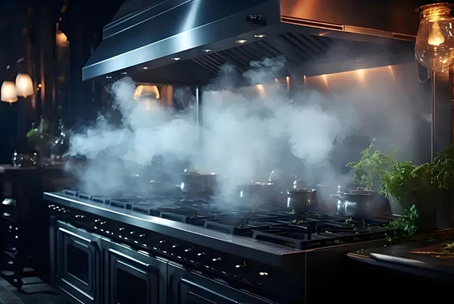 廢氣主要是油煙,蒸汽,熱氣,濕氣,還有下水道散發的霉味,柴油散發的氣味,滲漏的燃氣等,主要通過排煙罩排到室外,沒有排煙罩的工作間靠通風設備派出。例如,粗加工間,海鮮暫養間,殺魚間濕氣大,有腥味,不及時通風換氣,過于潮濕就容易發生霉變,要及時清掃,及時通風,排除濕氣。