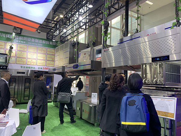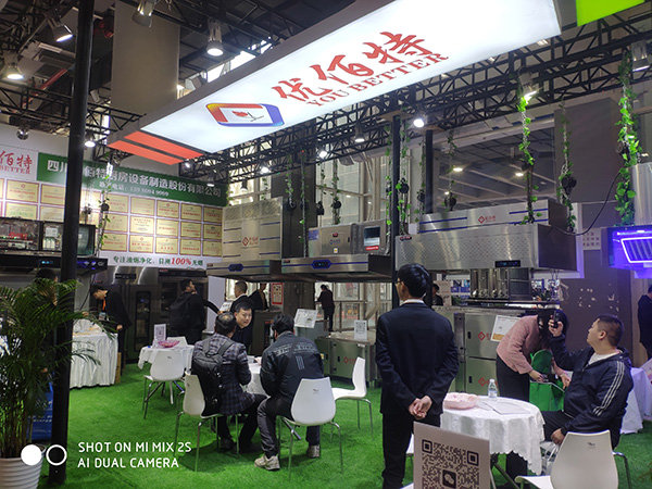 優佰特公司作為西南地區的大型廚房設備廠家,每年都會參加這樣的大型展覽。在這次展會上,我們不但展示了傳統的油煙凈化一體機,還新增了新開發的升降式油煙凈化有一體機。