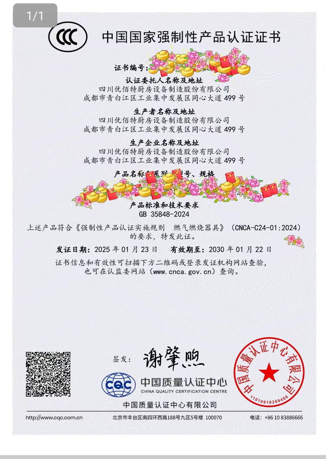 熱烈祝賀我司獲得商用爐灶3C強制認證證書