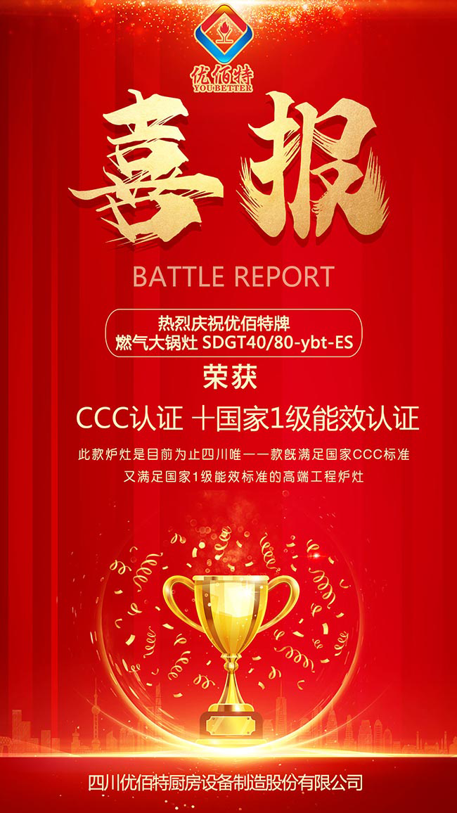 喜報!優佰特燃氣大鍋灶榮獲雙證證書!